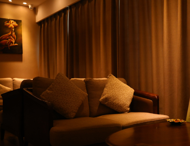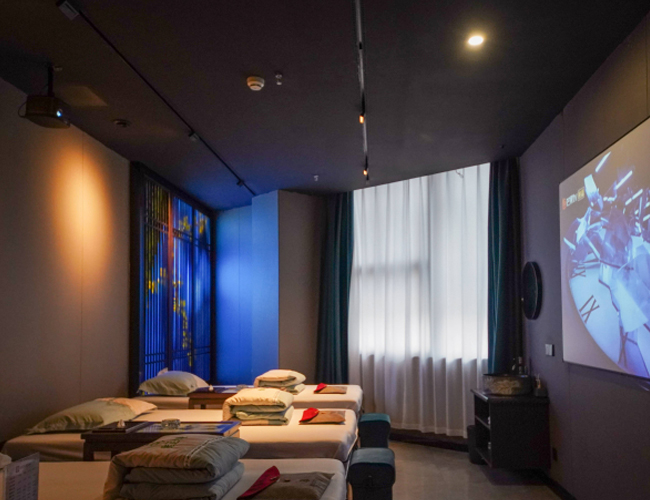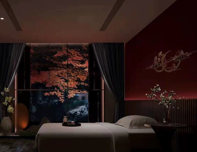 摩室布置得温馨而宁静,使用舒缓的色彩和柔和的灯光,让顾客在享受按摩服务时能够完全放松。
